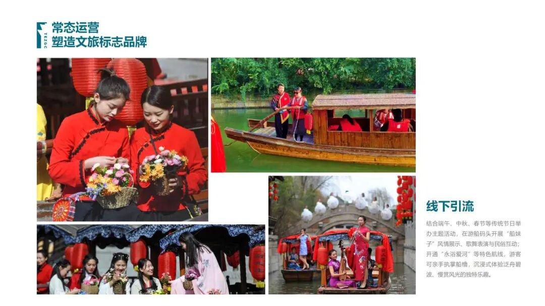 线下,逢年过节我们结合节日特点,在码头上做一些风情展示,与游客进行互动。今年我们还开通了“永浴爱河”这个航线,大家知道平时坐船只能坐,这个航线上游客不仅能坐船,还可以亲身体验怎样划船,沉浸式的体验到了人在船中坐,船在画中游的一个独特乐趣。